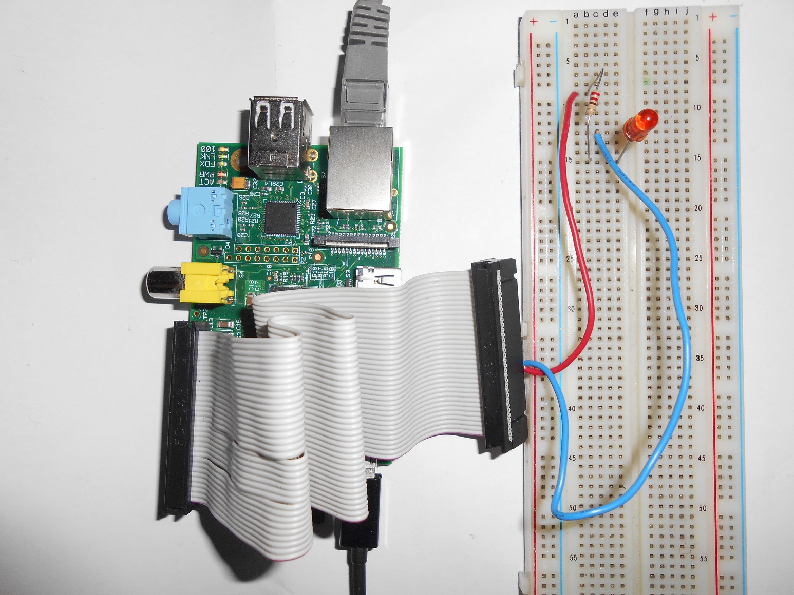 The setup is very trivial, just the GPIO 3 with a series resistor connected to the LED. This useless picture is posted “just for fun”. 🙂