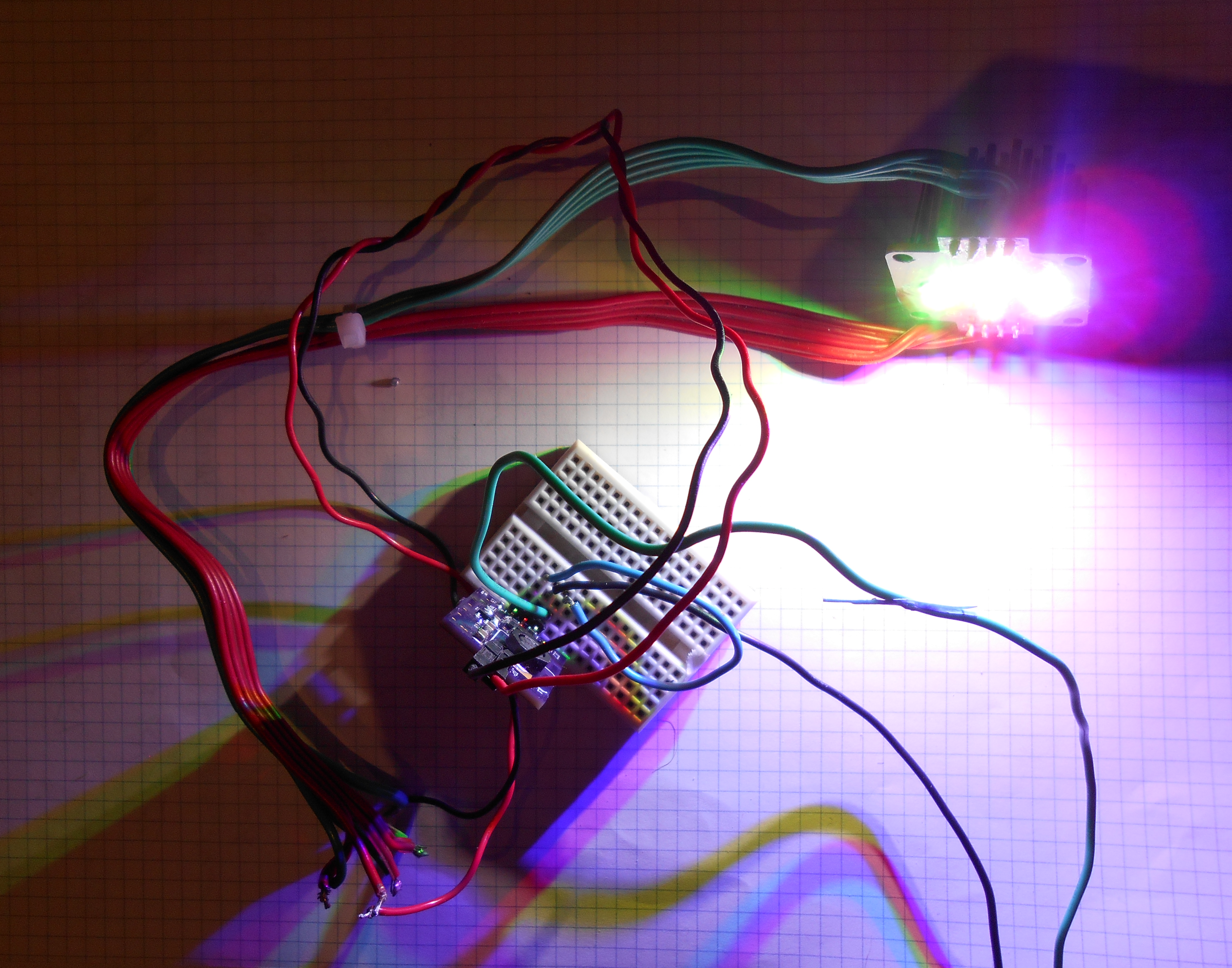 The LED board (a.k.a. satellite board) is straighforward: 8 pins, 4 anodes and 4 cathodes to drive each LED individually using 2 wires per LED connected to the driver. The A means anode (connect the +), K the cathode (connect the -). Below the RGBW LEDs soldered on the red, green, blue and white position.